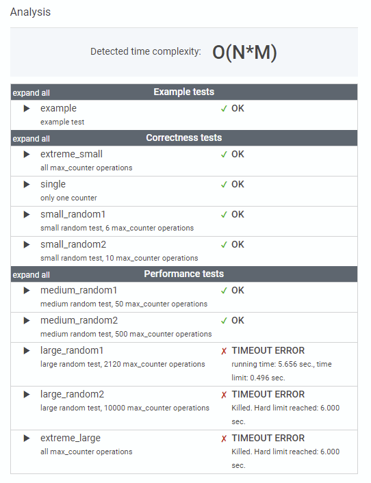 아무래도 counters를 초기화하는 문제 때문에 O(N*M)이 나온 듯하다