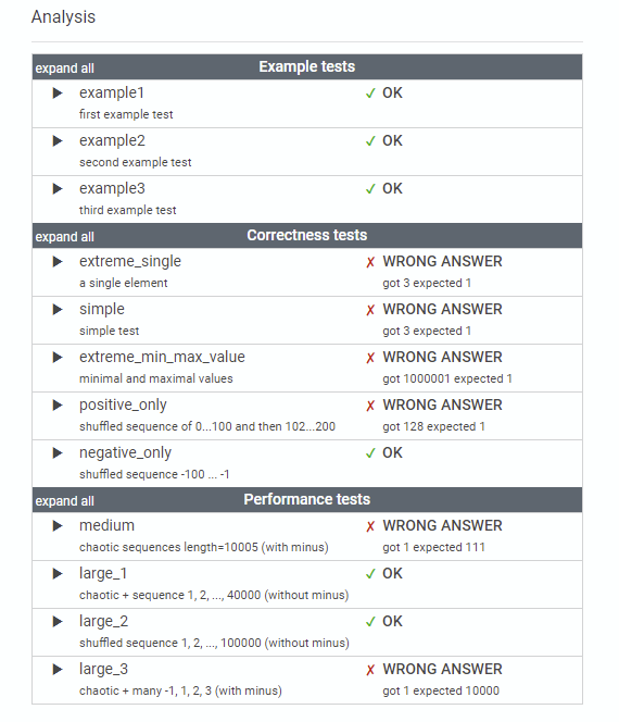N is an integer within the range [1..100,000];each element of array A is an integer within the range [−1,000,000..1,000,000].대충 해석하자면 A는 N개의 정수가 있는데 0보다 큰 가장 작은수를 반환한다.