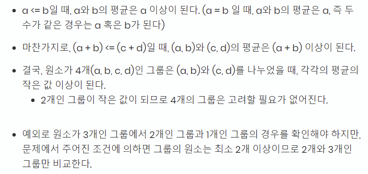 알고리즘 def solution(A): min_val = (A[0]+A[1])/2 min_index = 0 for i in range(2, len(A)): val = (A[i-2]+A[i-1]+A[i])/3 if val<min_val: min_val = val min_index = i-2 val = (A[i-1]+A[i])/2 if val<min_val: min_val = val min_index = i-1 return min_index