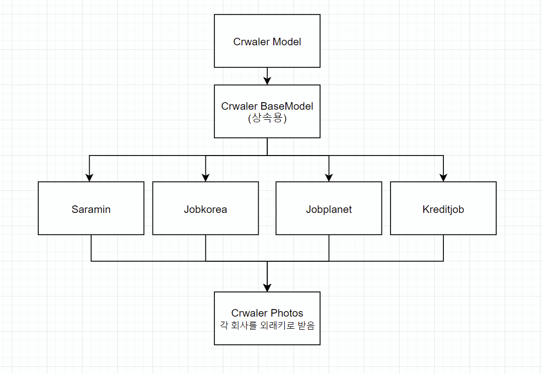 각 회사의 사진들을 하나의 모델에서 받기 위해 한 개의 Cralwer Photos에 각 회사의 외래키를 때려 박았다.