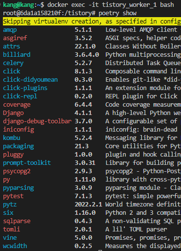 web, test, dev 제외한 celery와 dependency만 설치된걸 알 수 있습니다.