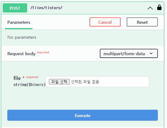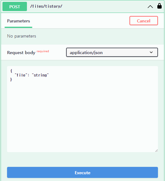 또한 아래 이미지와 같이 parameter를 추가하여, 테스트 할 수 있습니다.class TistoryView(APIView): @extend_schema( ... parameters=[ OpenApiParameter( name="name", type=str, description="description", required=False, ) ] ) def get(self, request): pass